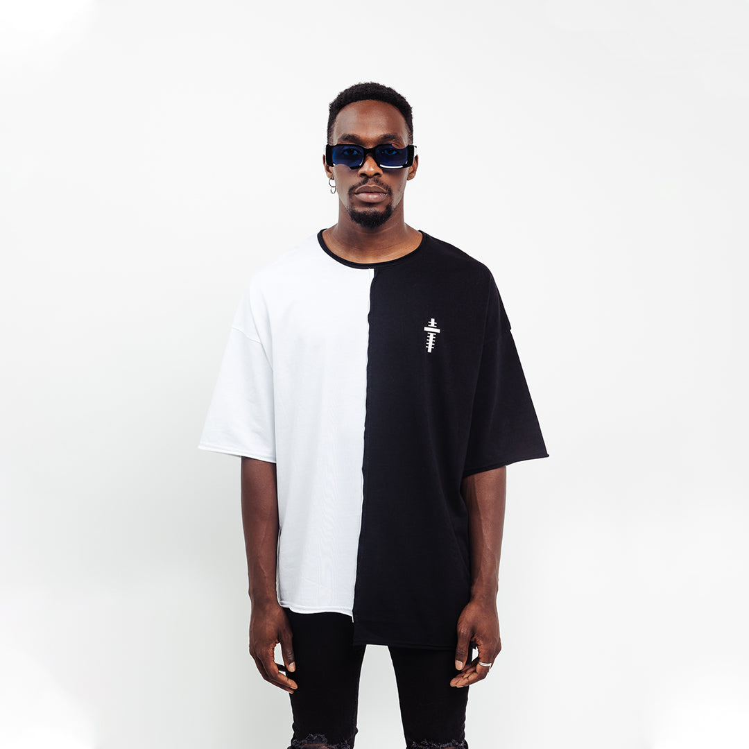 T-Shirt UNRELEASED S23 "006" BLACK & WHITE ASYMMETRICAL