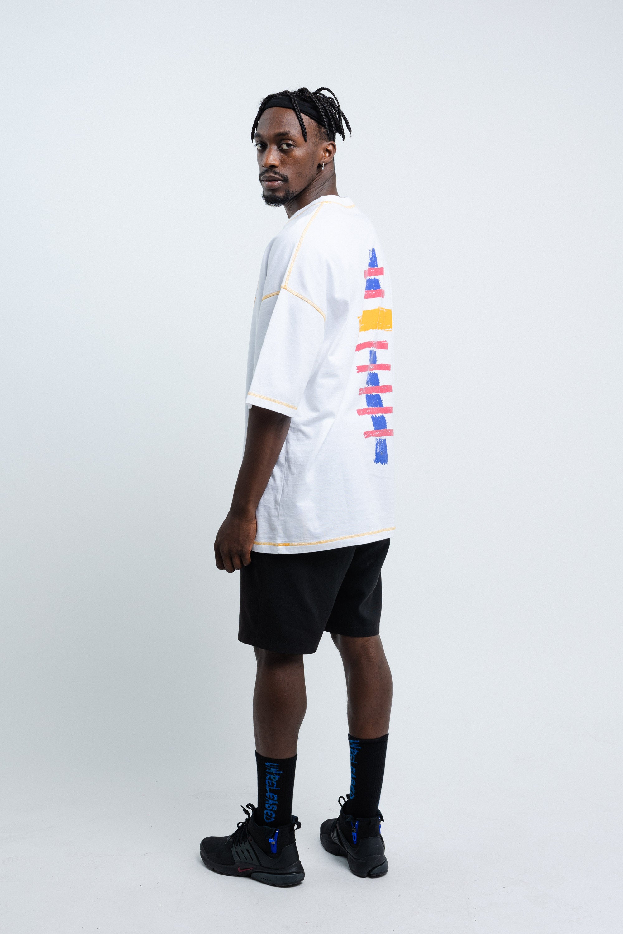 Camiseta Oversize de manga corta y cuello redondo. Logo de marca en el pecho en impresión digital. Etiqueta de fantasía cosida en parte inferior delantera . Impresión digital en la espalda en formato de gran tamaño.